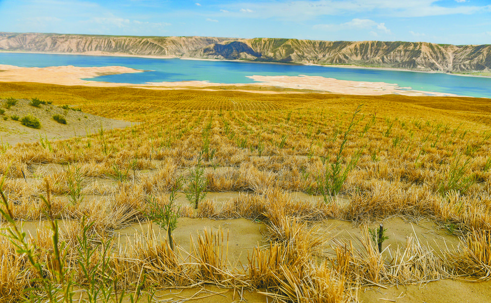 整齊排列的草方格,隨風搖曳的烏柳樹,生機勃勃。青海省海南藏族自治州共和縣龍羊峽庫區北岸——曾經的不毛之地,如今已煥然一新,一條條綠色長廊盡顯生命的力量。自生態項目建設以來,共和縣通過草方格沙障與烏柳插桿水鉆造林、檸條直播及沙蒿撒播相結合等方法進行荒漠化治理,造林成活率達到90%以上,創造出龍羊峽北岸的“綠色奇跡”。