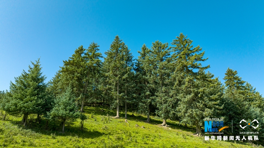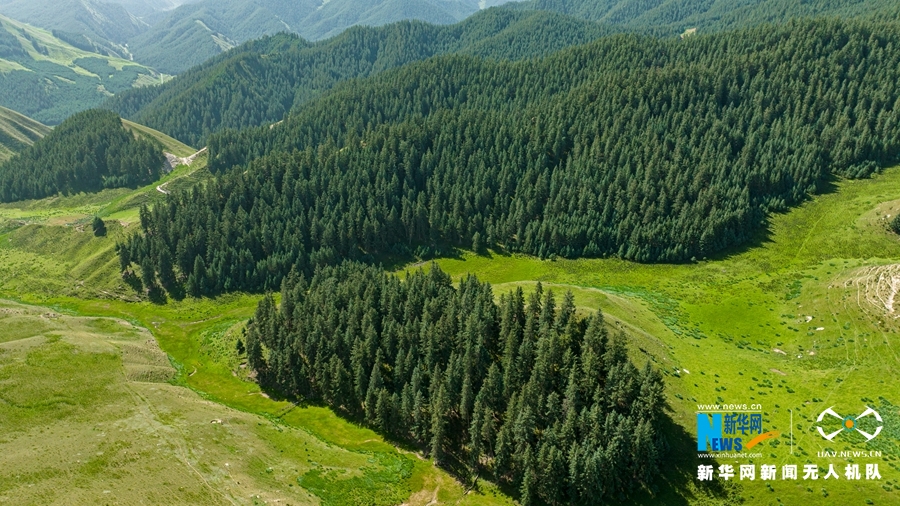 初秋時節,甘肅省張掖市肅南裕固族自治縣馬蹄藏族鄉境內,祁連山延綿不斷,林海蒼翠茂密,勾勒出絢麗多姿的迷人景觀。新華網發(成林 攝)