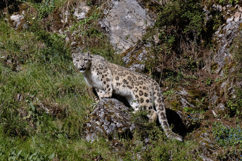 這是在青海玉樹藏族自治州雜多縣昂賽大峽谷內拍攝的雪豹(2022年8月6日攝)。新華社發(姚牧陽 攝)