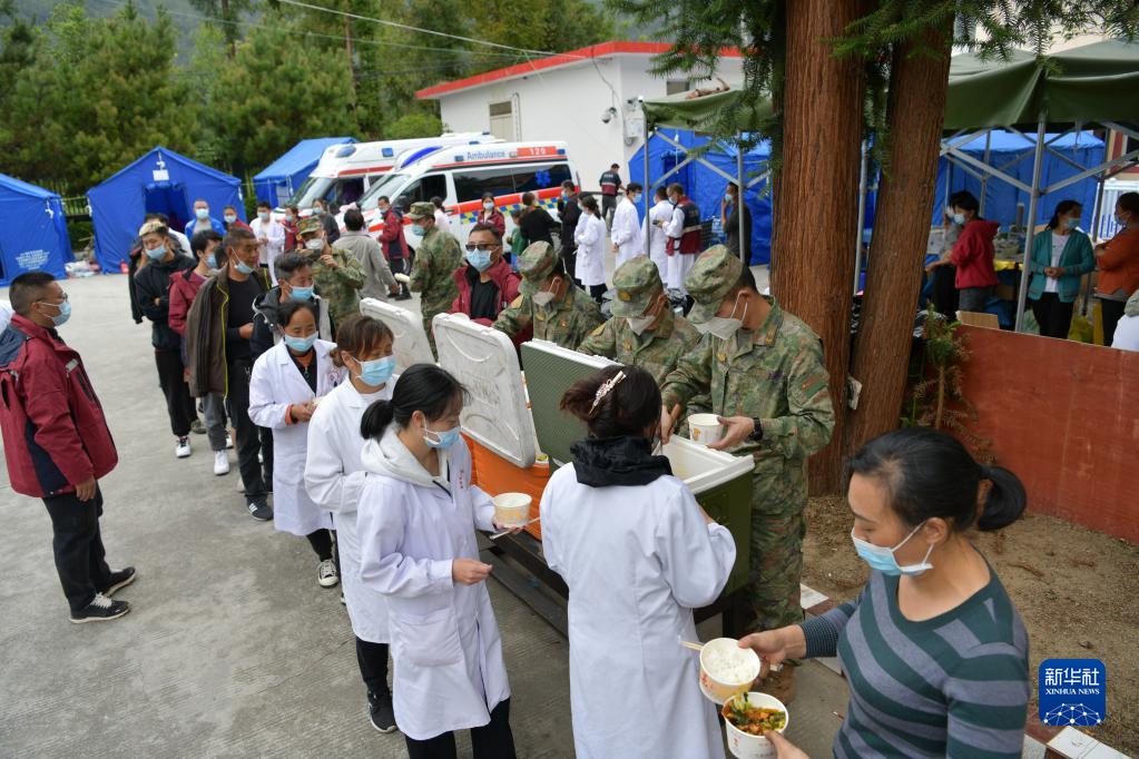 9月6日,西藏軍區川藏兵站部某大站救援隊抵達瀘定縣磨西鎮,開設臨時熱食供應站為救援人員和受災群眾提供保障。新華社發(任云 攝)