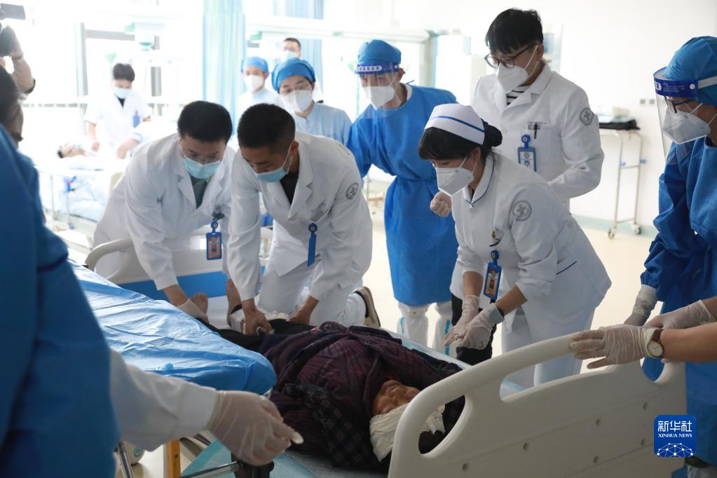 9月6日,西部戰區總醫院收治從瀘定縣轉運來的傷員。新華社發(韋世銘 攝)