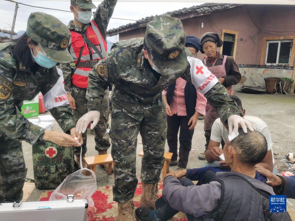 9月6日,武警四川總隊醫院醫療隊在瀘定縣磨西鎮救治傷員。新華社發(李華時 攝)