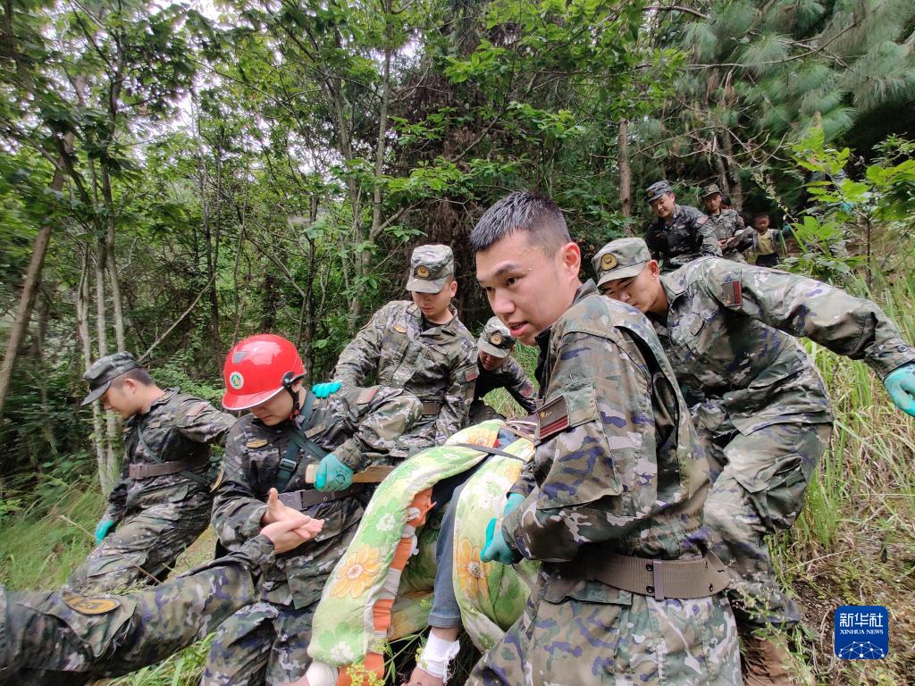 9月6日,武警四川總隊雅安支隊官兵在雅安市石棉縣王崗坪鄉轉移受傷人員。新華社發(李熠 攝)
