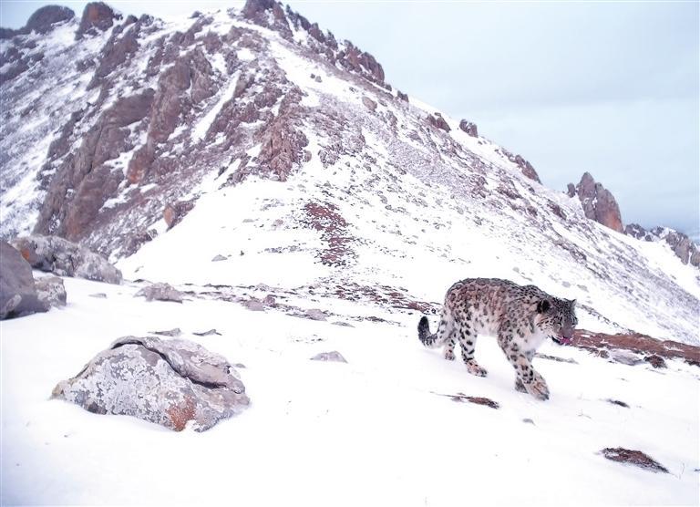 紅外線相機監測到的國家一級保護動物雪豹。甘南州生態環境局供圖