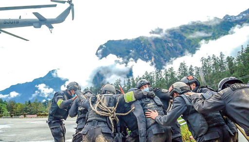 “9·5”地震發生前兩周,特警支隊舉行了一次警務技能大比武。比武科目包括高海拔山地武裝奔襲、簡易擔架制作、傷員應急處理、傷員轉運、結繩……兩周后,他們來到另一個比武場,這一次是與死神較量。