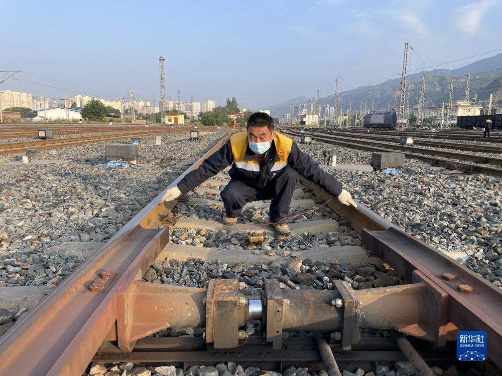圖為西寧電務段駝峰信號工區工長張金玉測試信號設備。新華社發 李紅蘭 攝