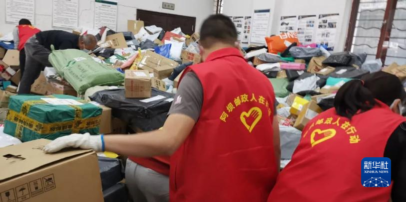 阿壩郵政十多位員工在近2萬件郵件中為客戶查找藥品。(四川郵政供圖)