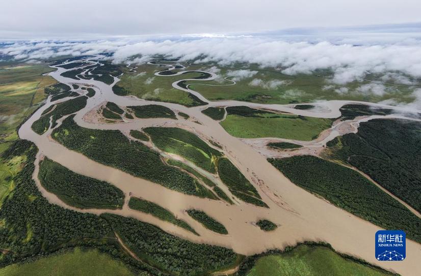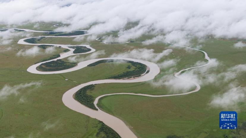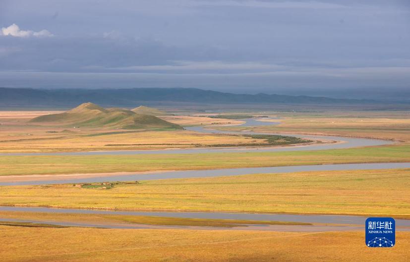 俯瞰若爾蓋縣唐克鎮(zhèn)的黃河九曲第一灣(2022年8月15日攝)。新華社記者 江宏景 攝