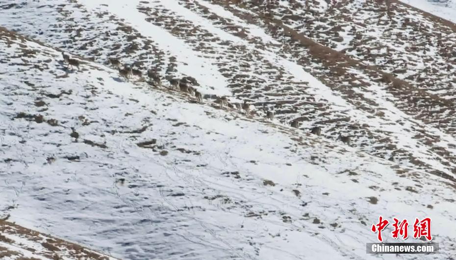 12月中旬,在地處祁連山區的甘肅肅南縣祁豐藏族鄉吊達坂附近,肅南縣融媒體中心記者拍攝到數群巖羊在公路旁的山坡上悠閑覓食。[詳細] -