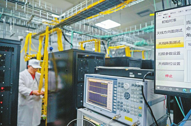 2022年10月28日 科研人員在調試圓環陣太陽射電成像望遠鏡系統設備。