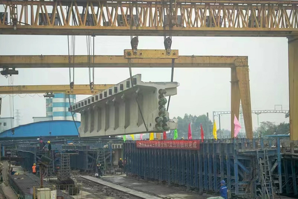 成蘭鐵路什邡制梁場最后一片T梁完成澆筑。