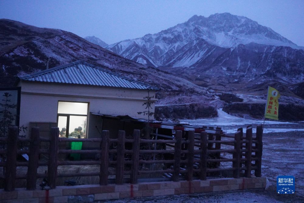 1月14日是北方小年,馬忠華和站上的另外4名生態管護員依然在崗值班。讓馬忠華欣慰的是,妻子和女兒中午專程從祁連縣城趕來,陪自己共度小年夜。當日14時左右,馬忠華和同事們像往常一樣出現在距離管護站10公里外的山腰間,開始巡護工作。