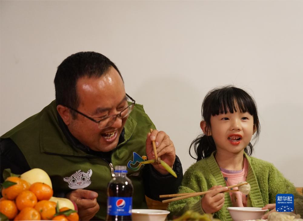 1月14日晚,馬忠華正和女兒一起吃餃子。新華社記者 解統強 攝