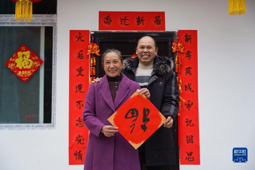 1月22日,石棉縣新民藏族彝族鄉農鄉村二組村民劉芳蓉和丈夫在新居前合影。石棉縣融媒體中心供圖