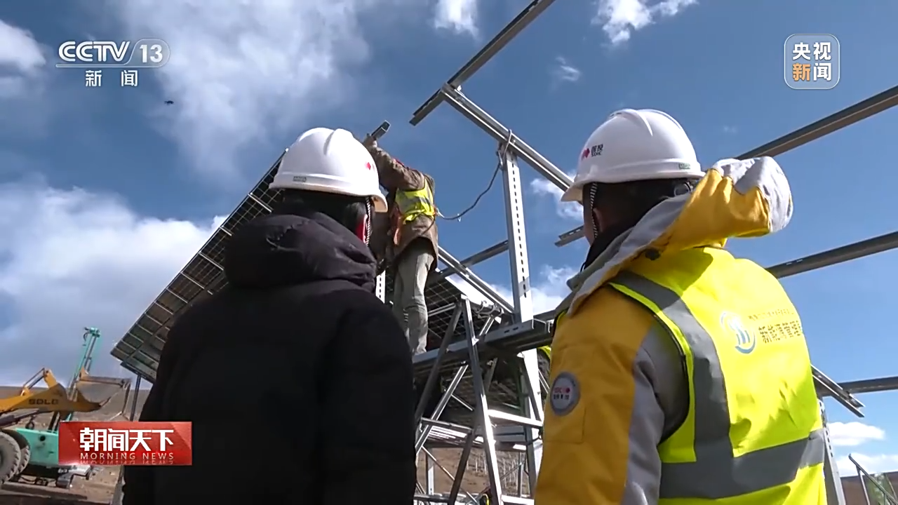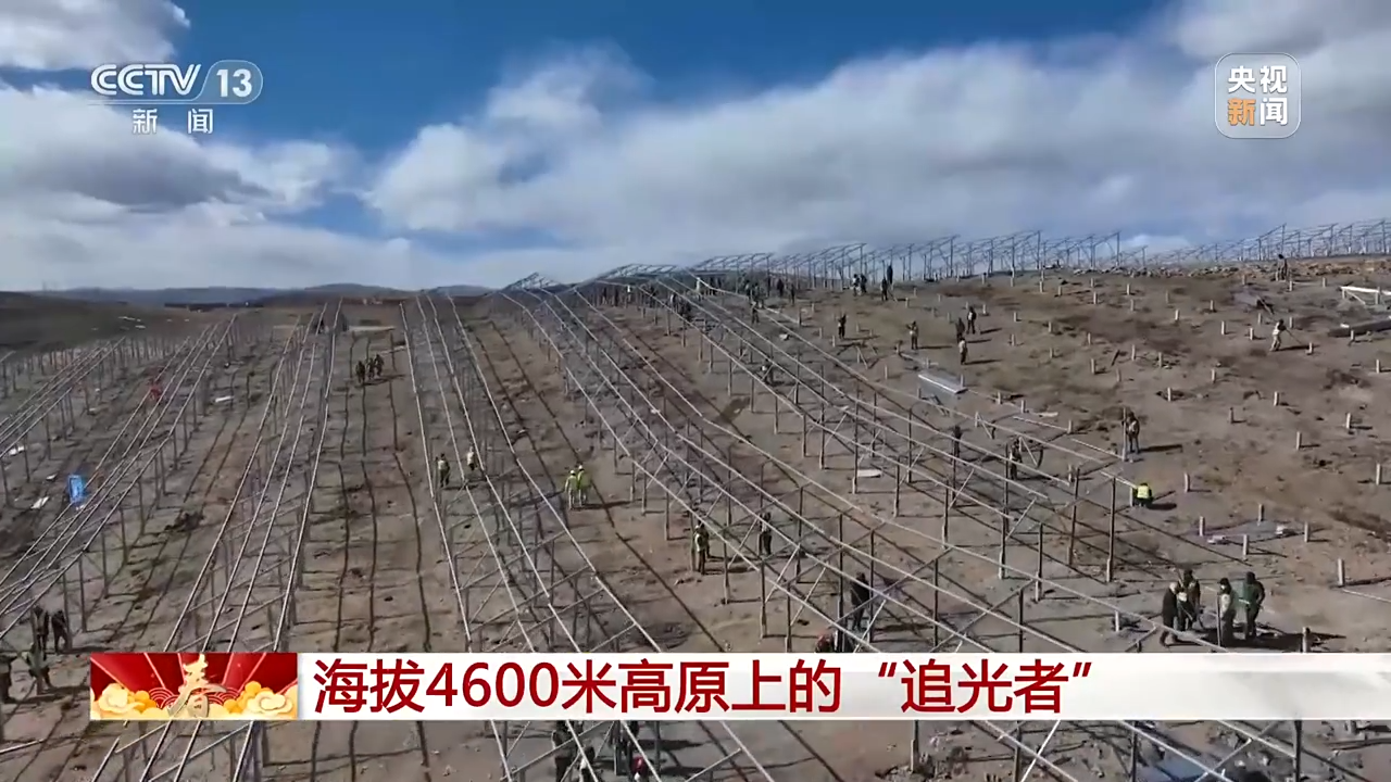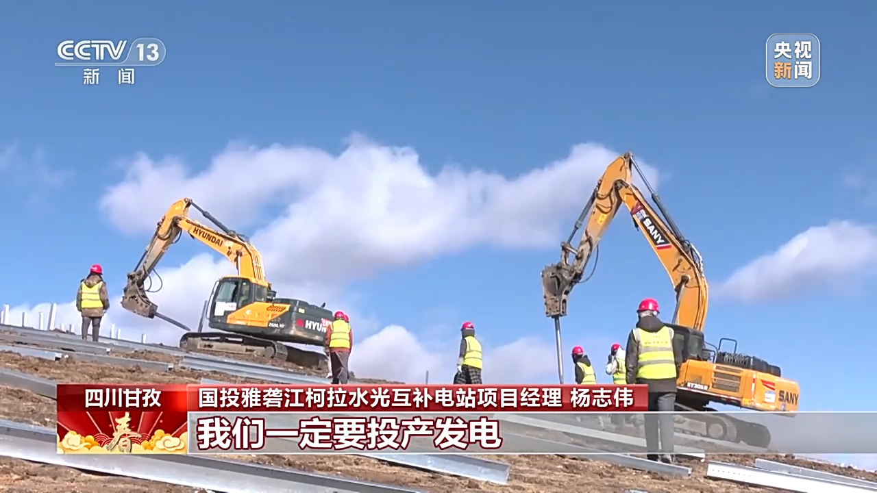 總臺央視記者 古峻嶺:在海拔4600米的柯拉水電光伏互補電站,1000多名建設者正在加緊施工,他們要在春節期間把53萬根光伏基礎樁全部施工完成。