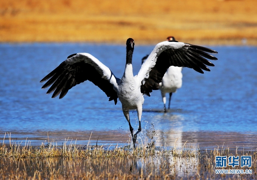 香格里拉納帕海濕地的黑頸鶴。李競(jìng)?cè)魯z
