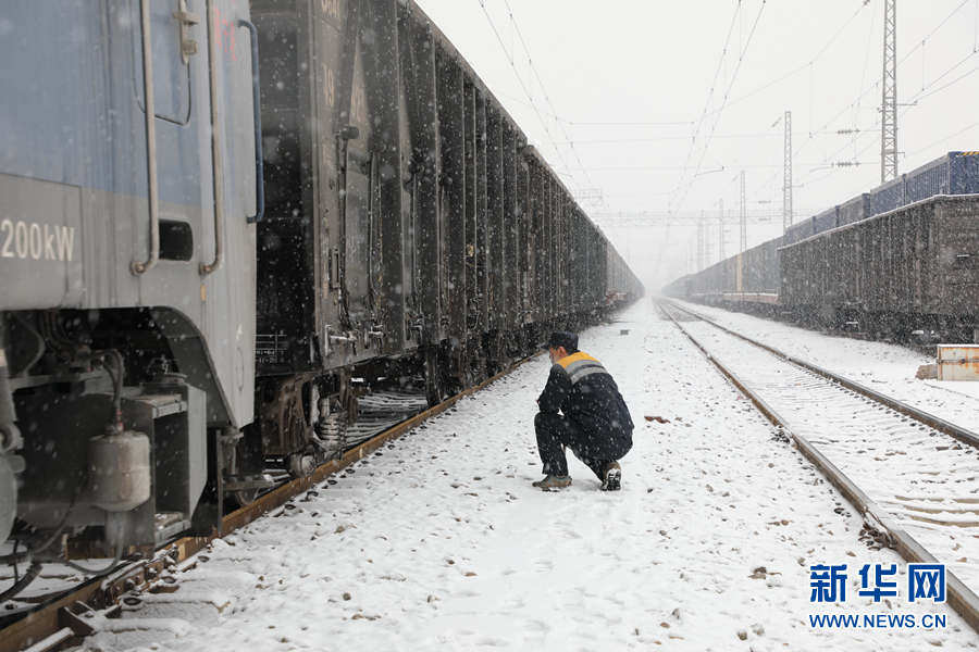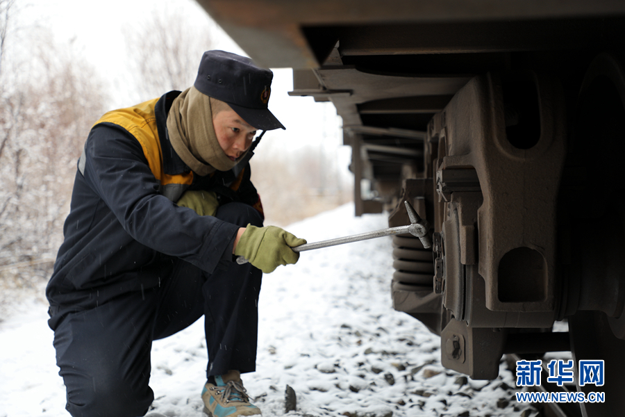列檢人員對貨運(yùn)列車進(jìn)行檢查。新華網(wǎng) 馬建林 攝