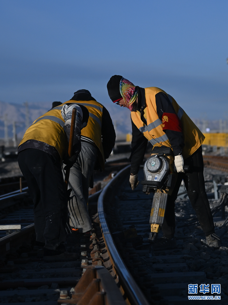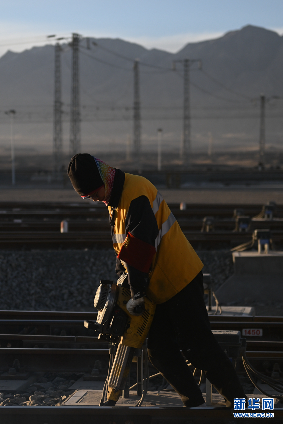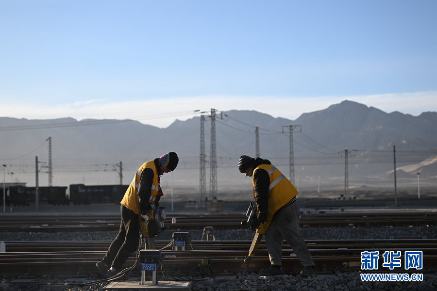2月7日,中國鐵路青藏集團有限公司格爾木工務段格南線路工區的職工在格爾木南站施工。新華社記者 張龍 攝