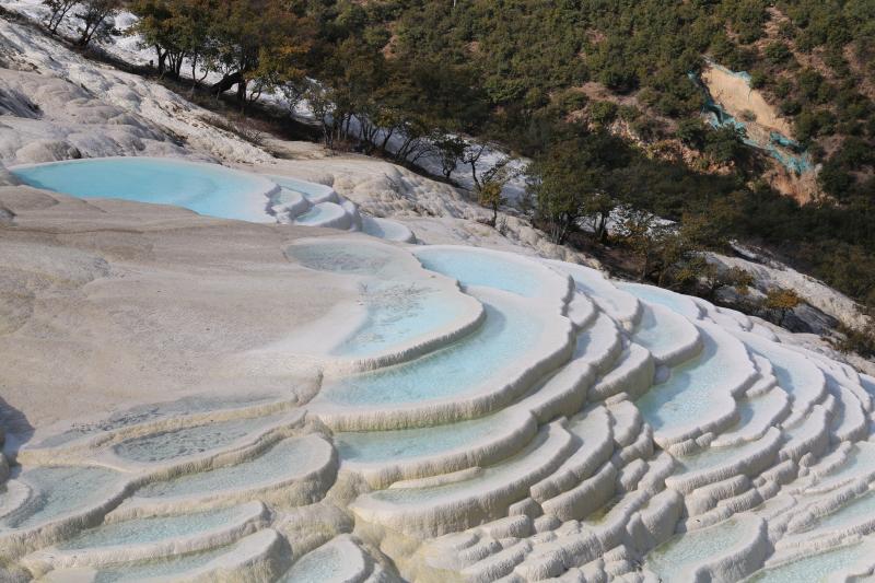 白水臺景區(qū)位于香格里拉市三壩鄉(xiāng)白地村,距香格里拉市城區(qū)100公里左右,海拔2380米,是迪慶重要的旅游勝地。富含碳酸氫鈣的泉水穿過山花叢林逐漸沉淀,覆蓋原有的土地,長年累月形成臺幔,層層疊疊似梯田,清洌澄碧的泉水由臺地越過玉埂銀丘,自上而下沿泉臺緩緩漫下,形成白水臺獨特的自然景觀。