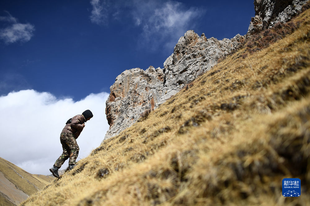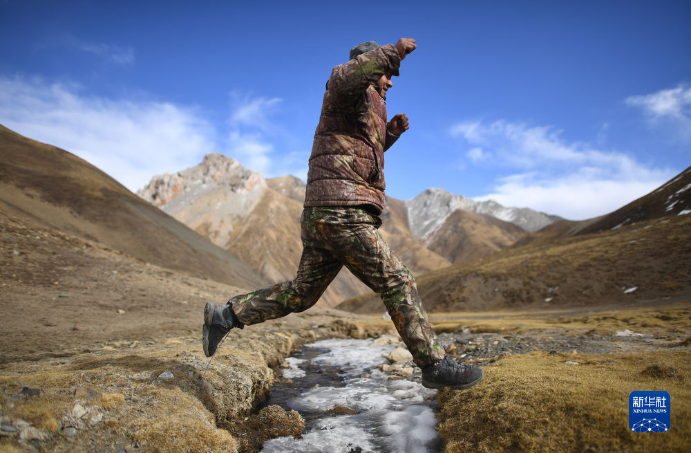 2月22日,更求曲朋在昂賽大峽谷內巡護。新華社記者 張宏祥 攝