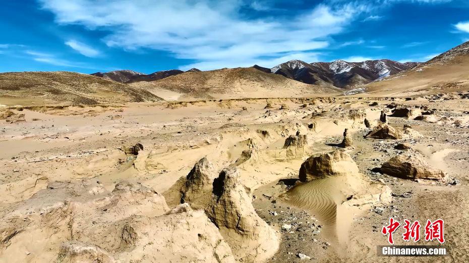 祁連山國家公園簽約攝影師馬海青近日在青海湖北岸的青海省海北藏族自治州海晏縣境內,拍攝到“沙漠雅丹”奇幻美景。遇到起風,沙如游蛇,在風口中行走。畫面中,土臺的結構多已沉積層黃土形成,有不同的顏色,在早午晚太陽的光線的作用下,產生不同的色彩世界,奇幻無群。
