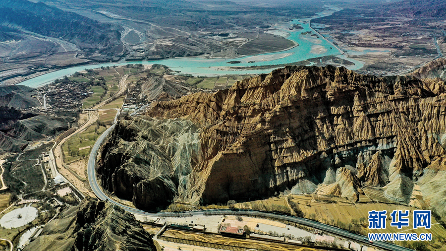 隨著氣溫回暖,位于黃河岸畔的青海省海南藏族自治州貴德縣春意漸濃。從高空俯瞰,貴德國家地質公園內,碧水東流、丹霞相映,勝似一幅奇特瑰麗的高原畫卷。