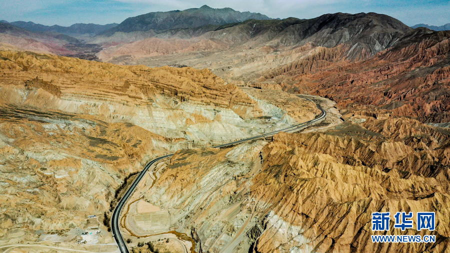 山崖巍峨陡峭,道路蜿蜒向前。新華網 宋忠勇 攝