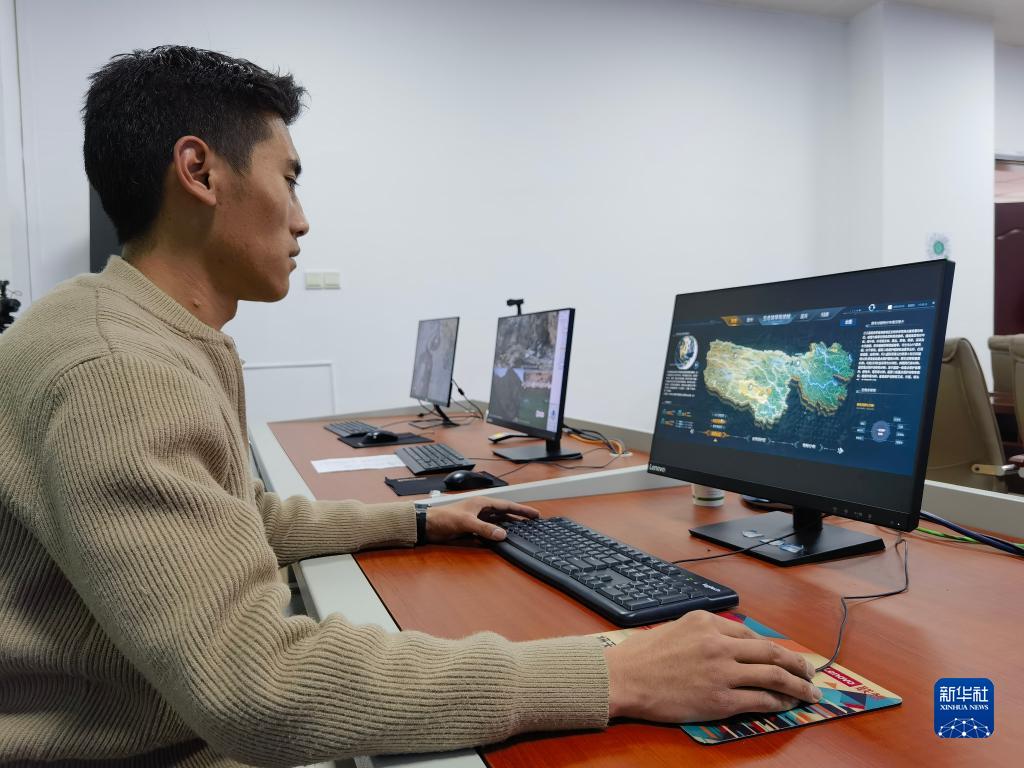 3月23日,工作人員正在操作“江源之窗”視頻觀測系統(tǒng)。新華社記者 柳澤興 攝