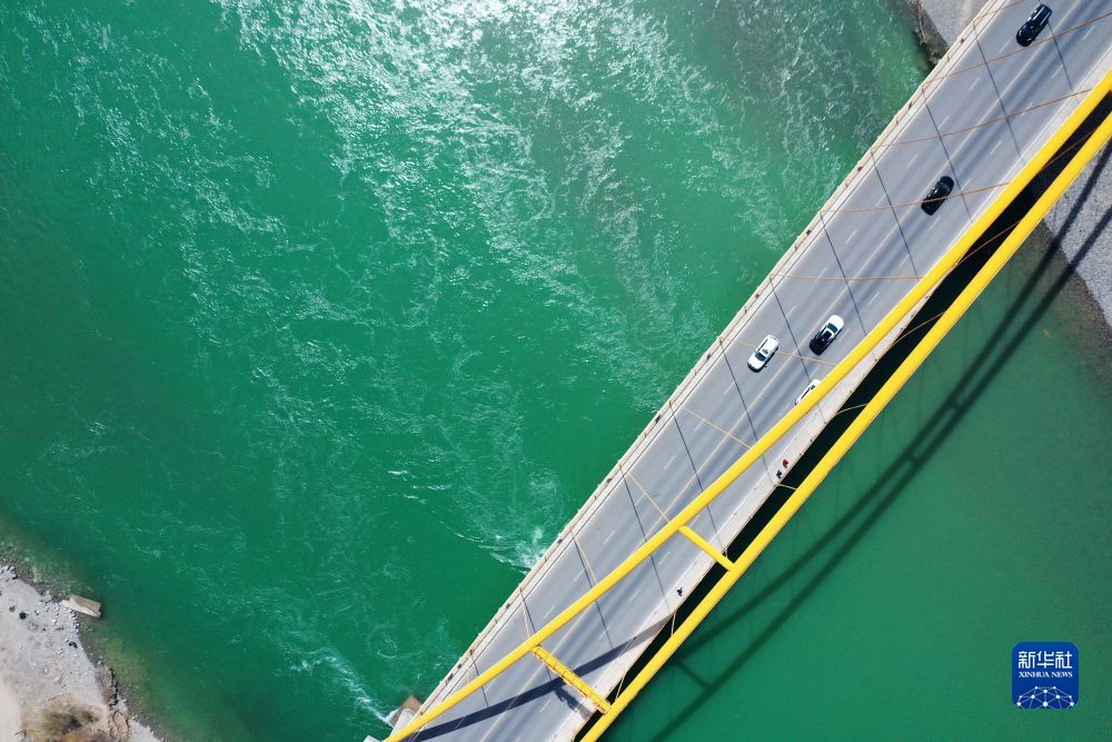 4月9日,車輛從大橋上駛過(guò)(無(wú)人機(jī)照片)。新華社記者 耿輝凰 攝