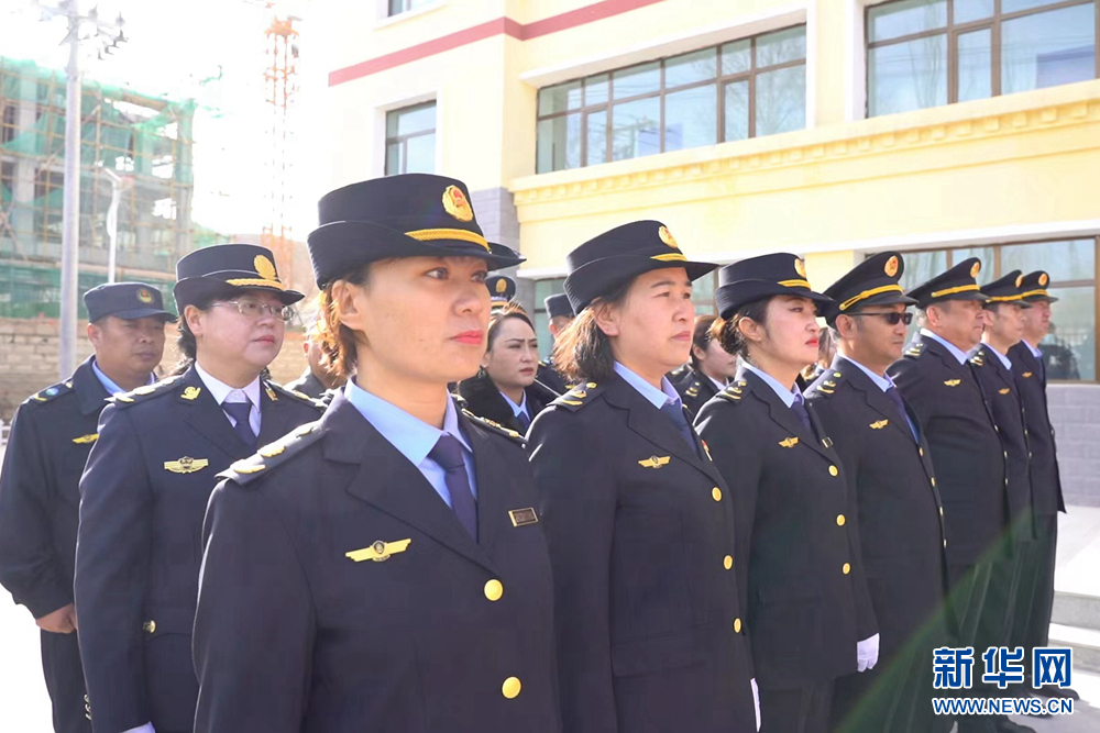 圖為共和縣綜合行政執法局工作人員。新華網發(仁青多杰 攝)