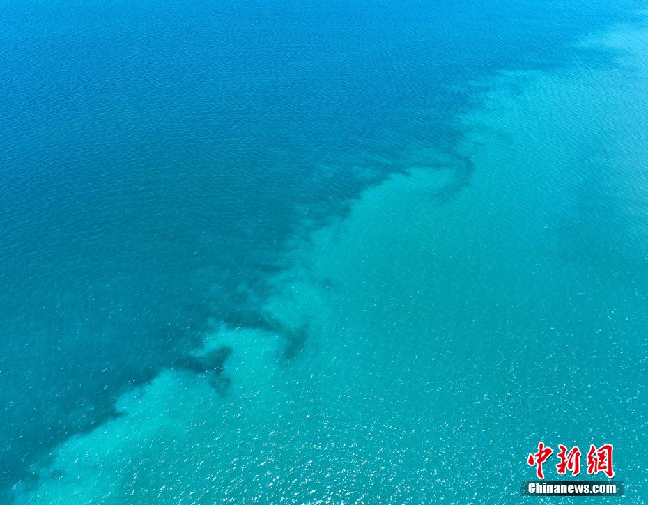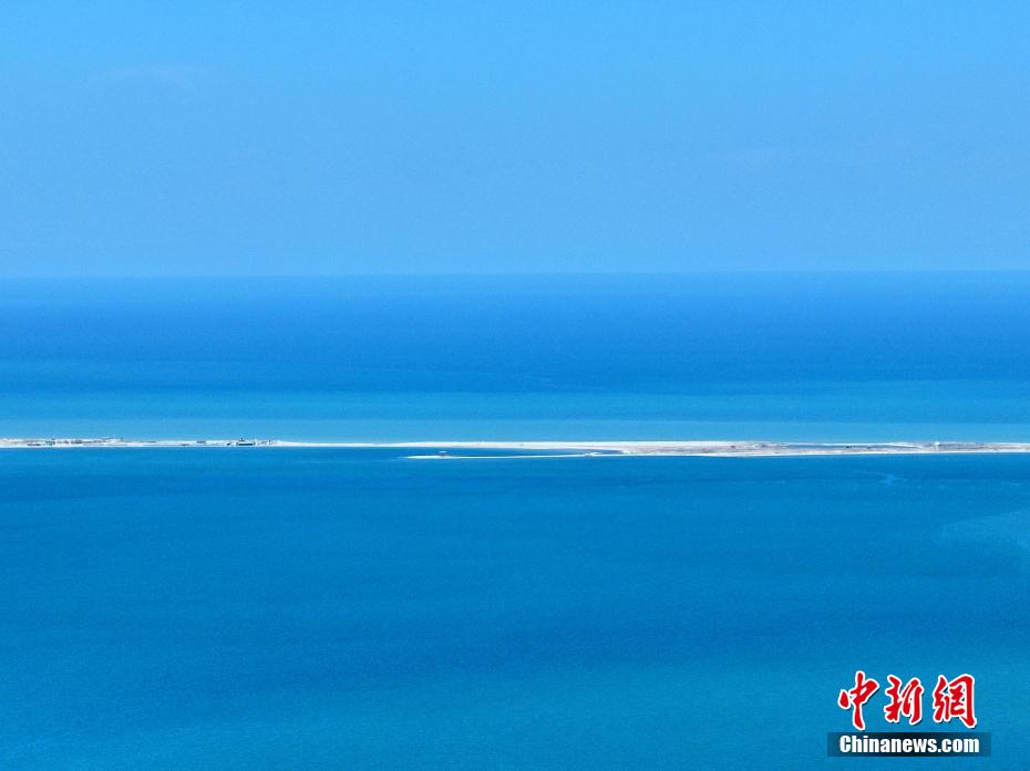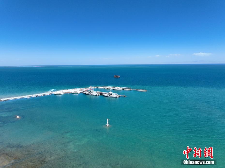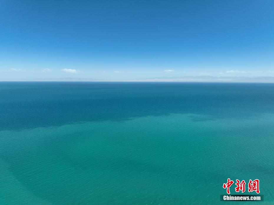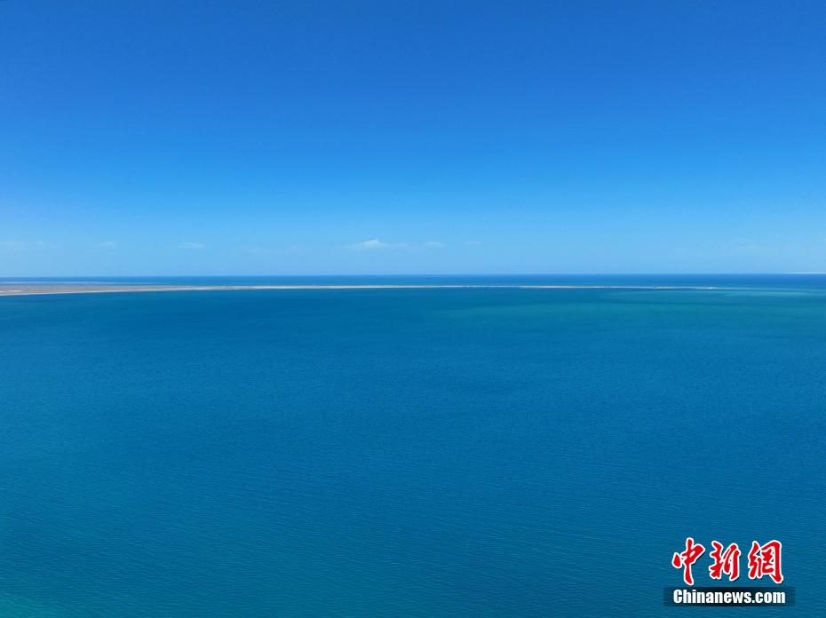 暮春時節,素有“高原藍寶石”之稱的青海湖天高云淡、波光粼粼。遠處的山與碧藍的湖水交相輝映,宛如油畫,美不勝收。圖為航拍青海湖水天一色。