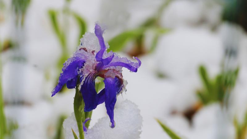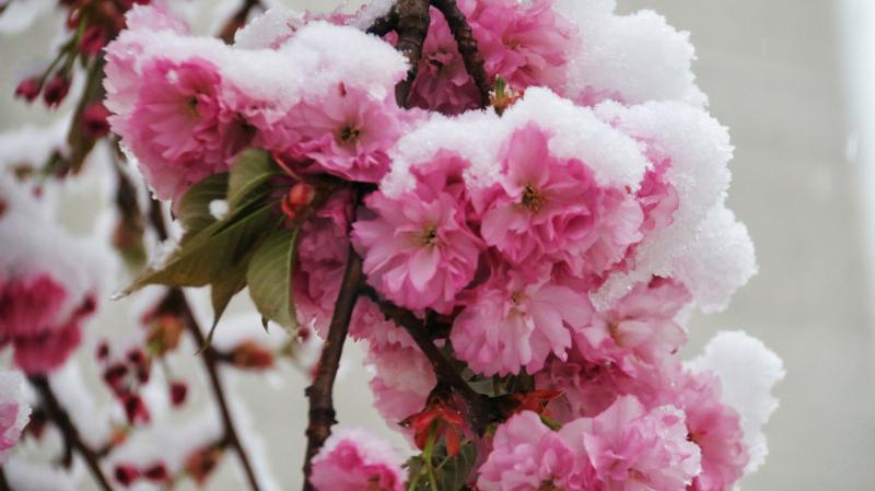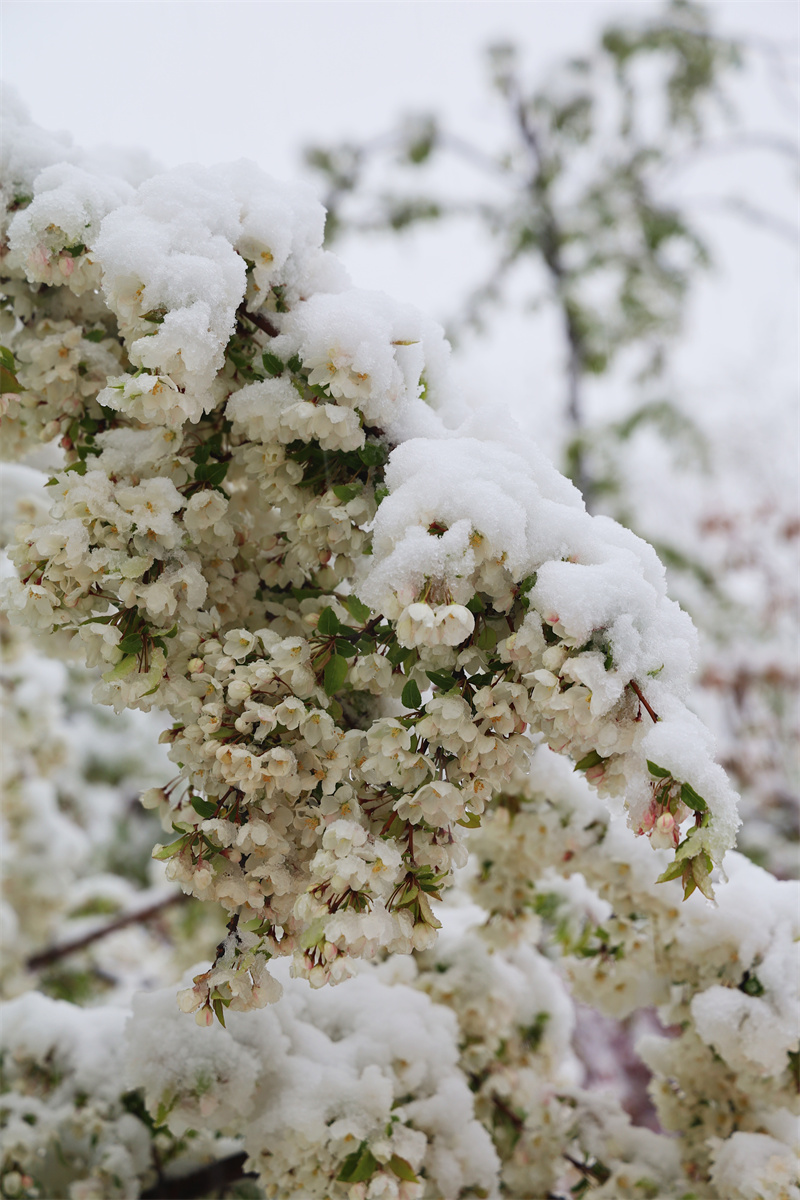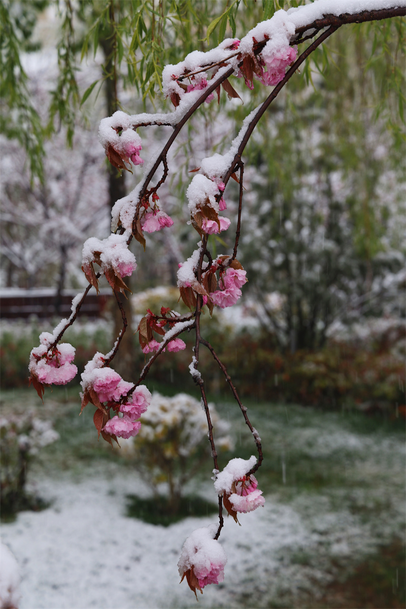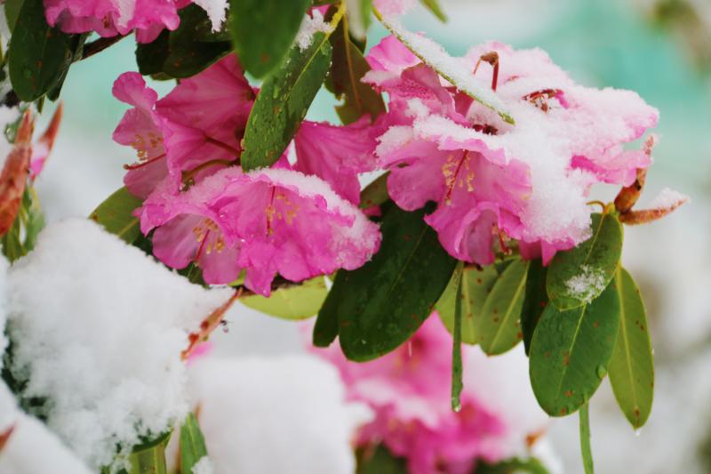 立夏節氣過后,香格里拉又迎來了一場大雪。櫻花、杜鵑花、鳶尾花在雪中競相綻放,美如童話世界。