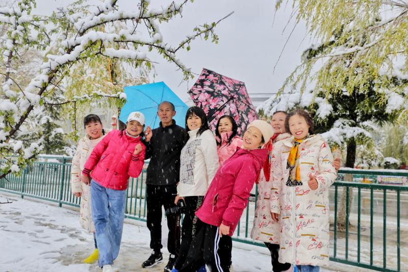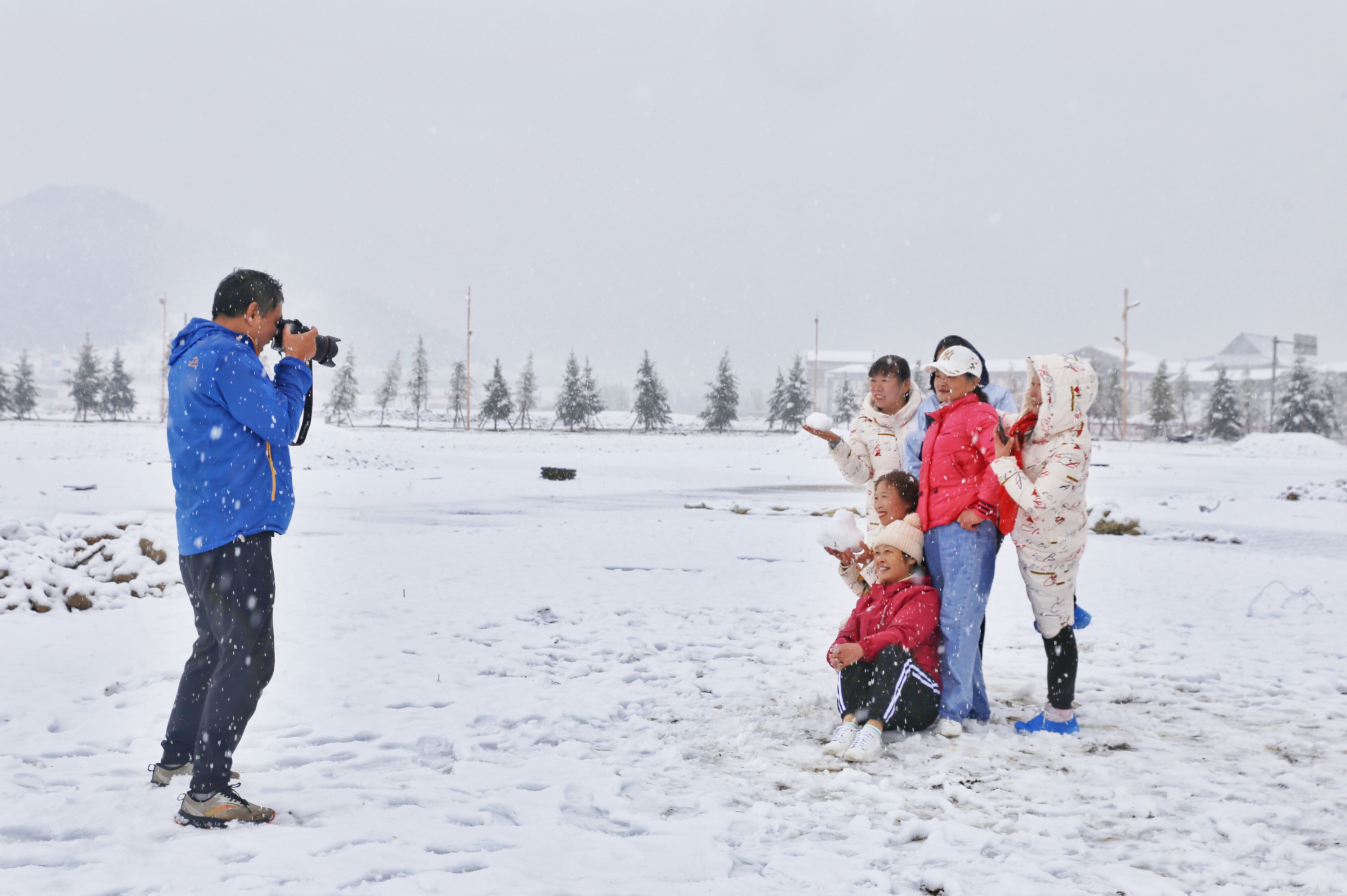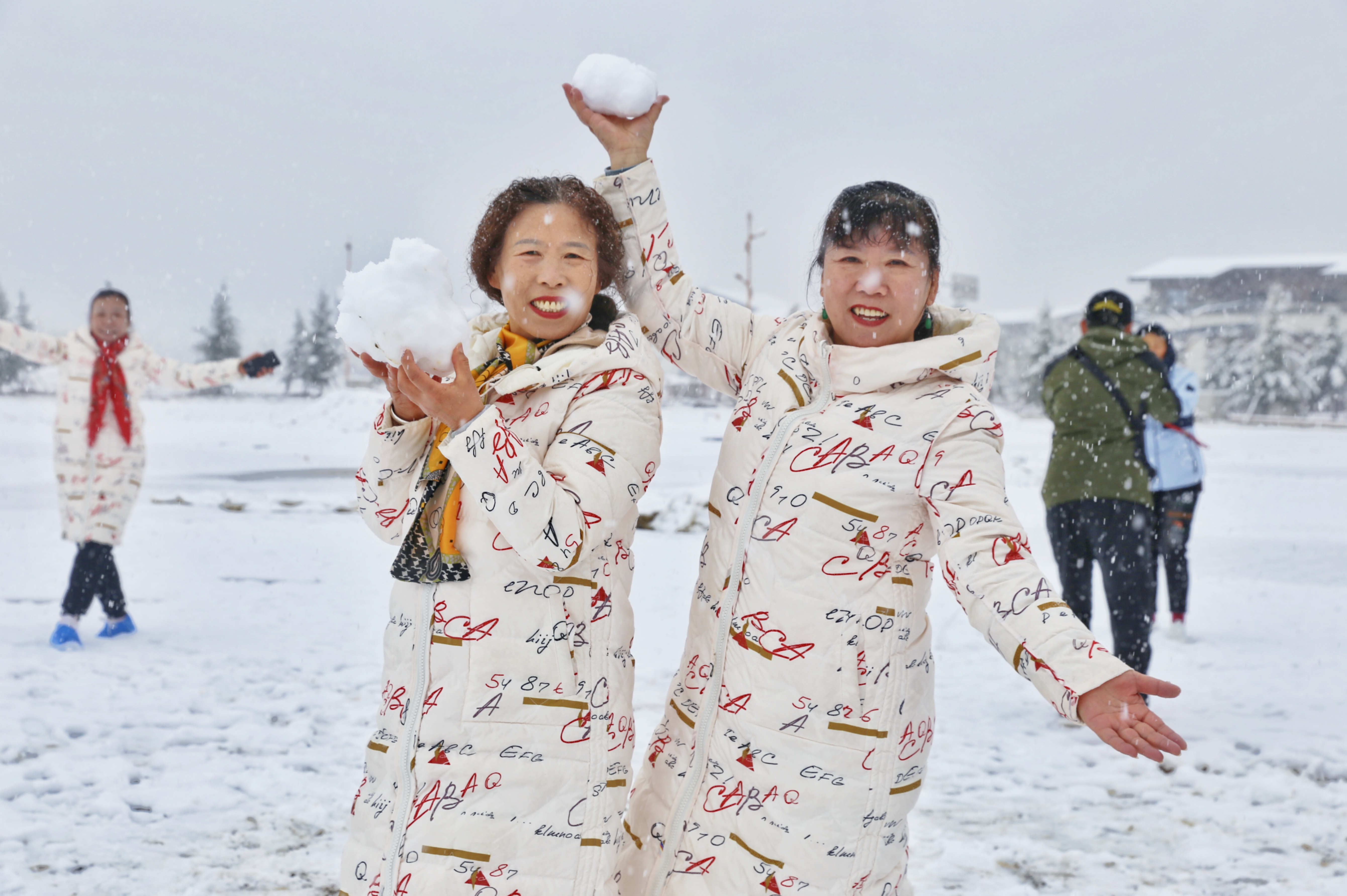 5月15日,香格里拉迎來一場夏雪,大雪紛飛的雪地中一群來自貴州的“嬢嬢團”正興奮的玩雪、拍照,“太有意思了,五月也能玩到雪,很難得。”今年65歲的劉嬢嬢告訴記者,她們在香格里拉游玩三四天了,今天準備返程,出城路上被雪景吸引便索性再留出半天時間看雪。雪地中的嬢嬢們精氣十足,捏雪球、劈腿、下腰、打滾……大家紛紛擺出自己最拿手的pose拍照記錄下這令人驚喜的美景。