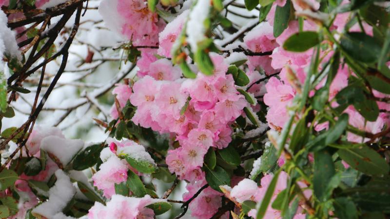 立夏節氣過后,香格里拉又迎來了一場大雪。櫻花、杜鵑花、鳶尾花在雪中競相綻放,美如童話世界[詳細] -