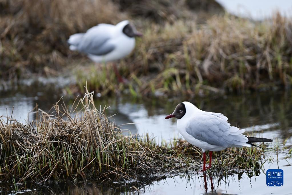 這是5月17日在青海省海北藏族自治州剛察縣境內的青海湖仙女灣景區拍攝的棕頭鷗。新華社記者 李占軼 攝