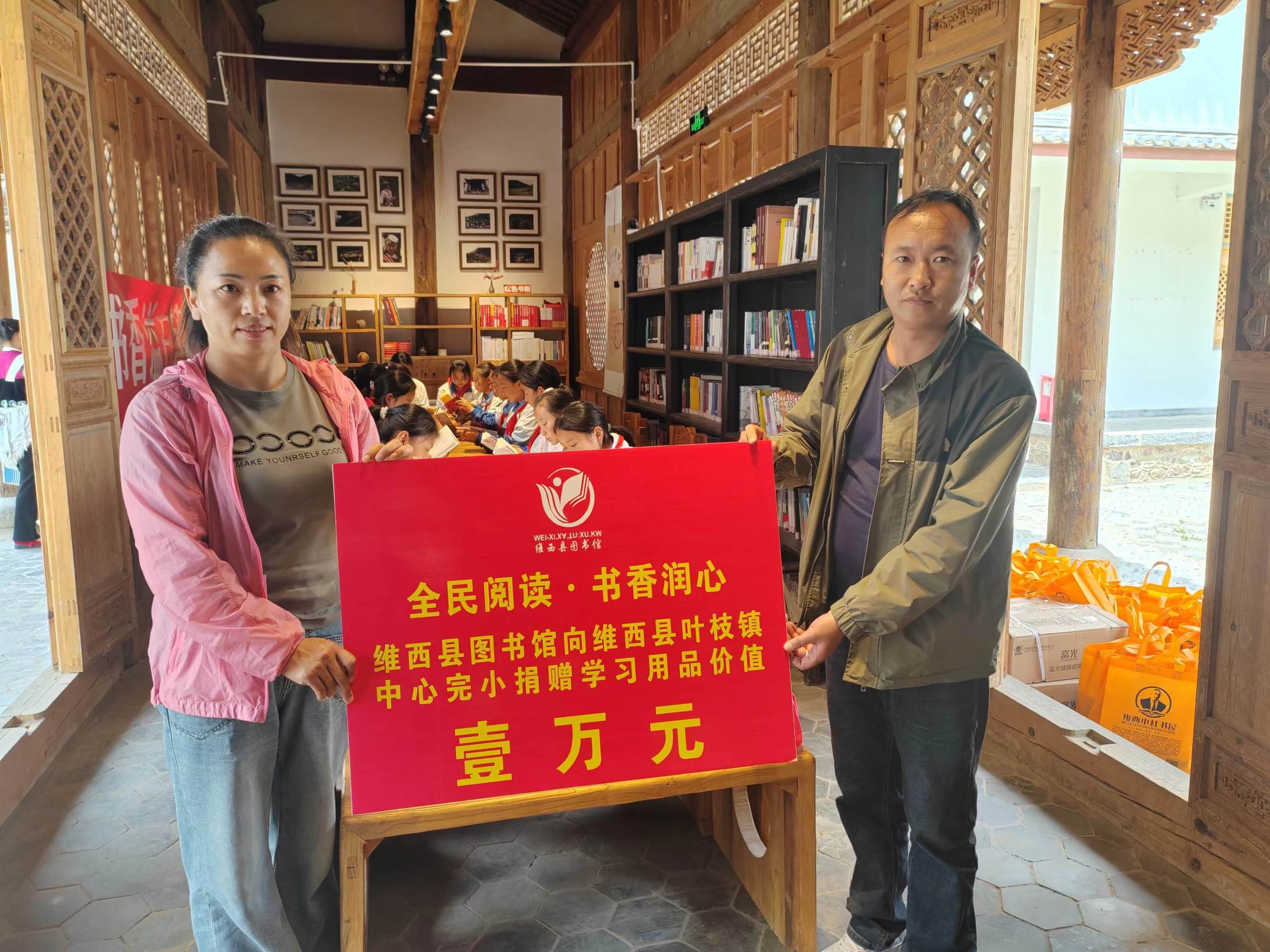 當天,還在葉枝鎮鄉愁書院開展了讀書分享活動,維西縣圖書館現場向葉枝鎮中心完小捐贈了價值10000元的學習用品。