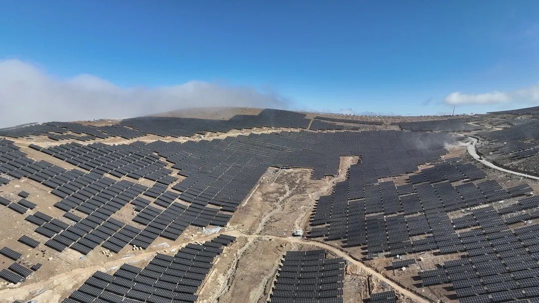 同時,項目工程量大,場址面積約16平方公里,由200多萬塊光伏組件、5000多臺逆變器、300多臺箱式變電站組成。針對系列痛點,為趕在今夏用電高峰前投運,建設(shè)者們創(chuàng)新工程技術(shù)手段,先后攻克10余項技術(shù)難題,創(chuàng)造了大型光伏項目在高寒高海拔地區(qū)冬季連續(xù)大規(guī)模施工的先例。