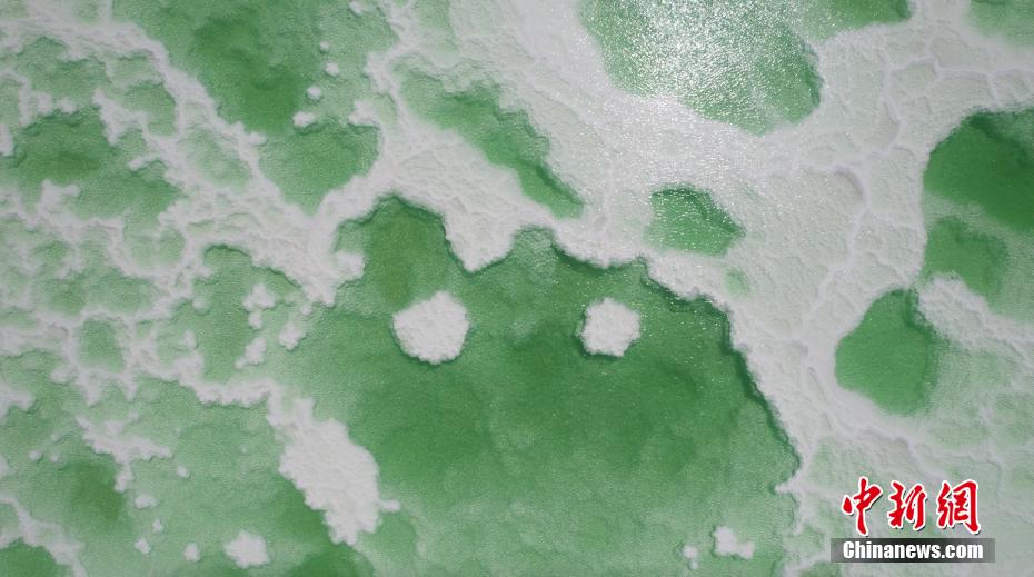 8月15日,航拍地處青海省海西州茫崖市的翡翠湖。翡翠湖是一個人工鹽湖,田字狀的湖水呈現出青翠的色彩。[詳細]