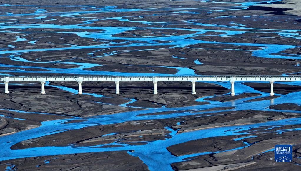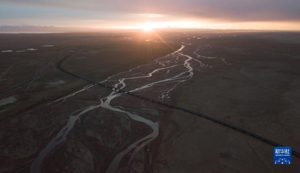 6月15日,一列火車駛過長江源地區的沱沱河。新華社記者 張鋮 攝
