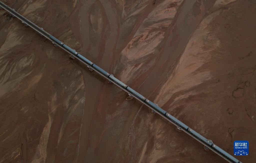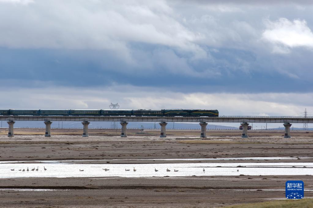 6月16日,一列火車經過長江源地區的楚瑪爾河。新華社記者 金立旺 攝