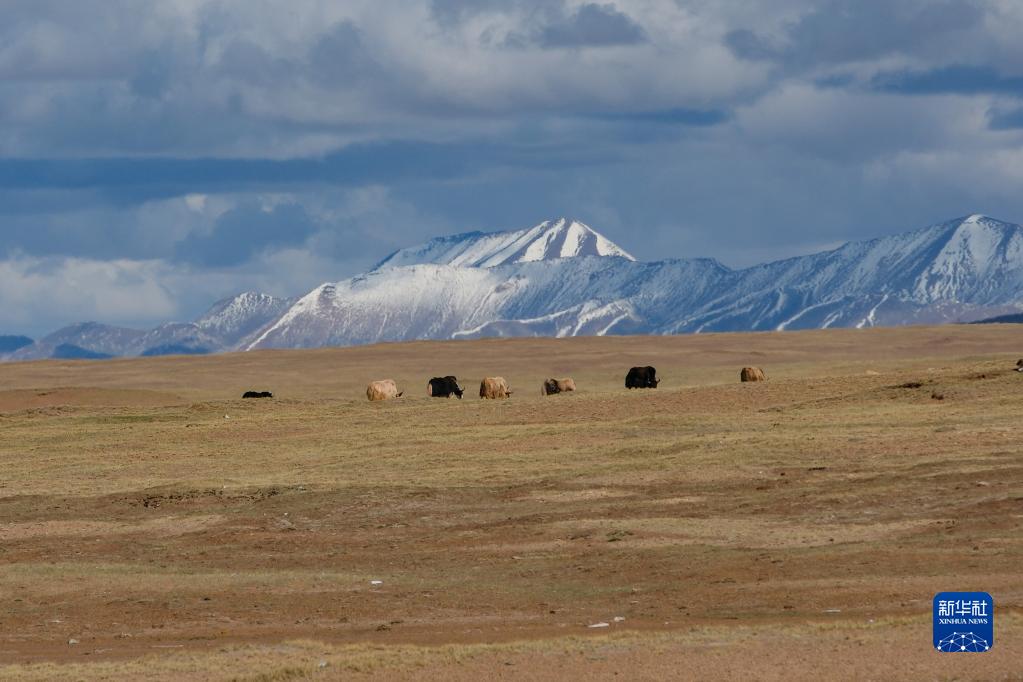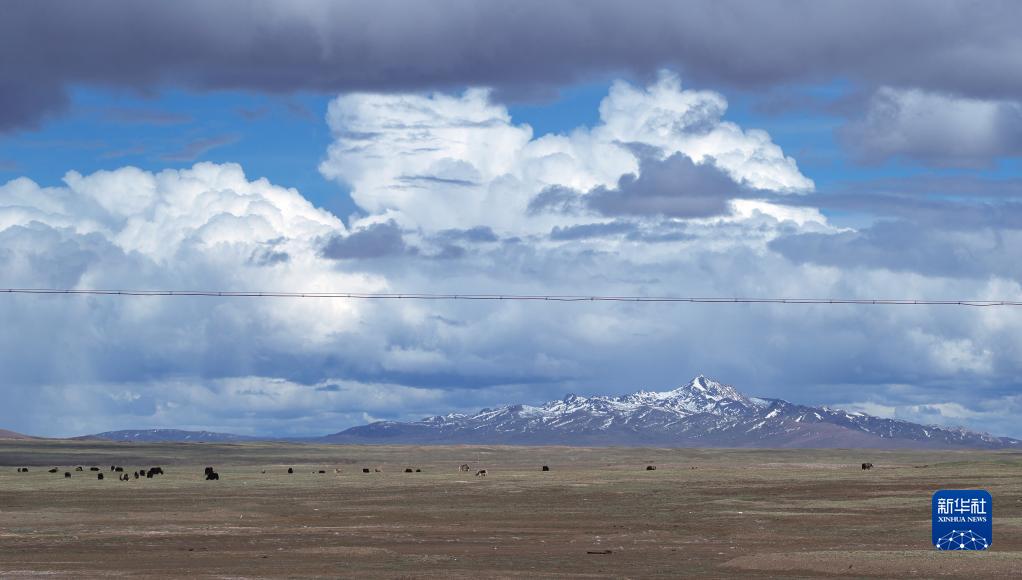 6月14日,在長江源地區的沱沱河附近,一群牦牛在覓食。新華社記者 張鋮 攝