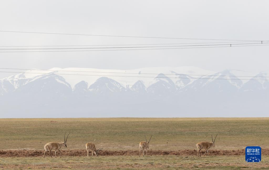 6月15日,在長江源地區的楚瑪爾河附近,幾只藏羚羊在覓食。新華社記者 金立旺 攝