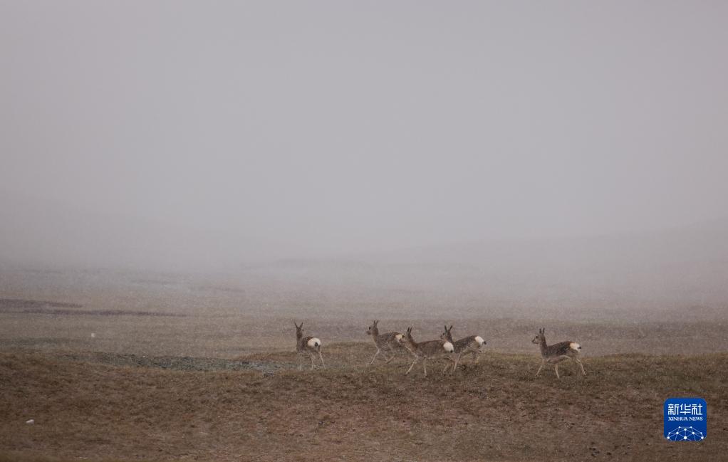 6月16日,在長江源地區的楚瑪爾河附近,幾只藏原羚在嬉戲。新華社記者 金立旺 攝