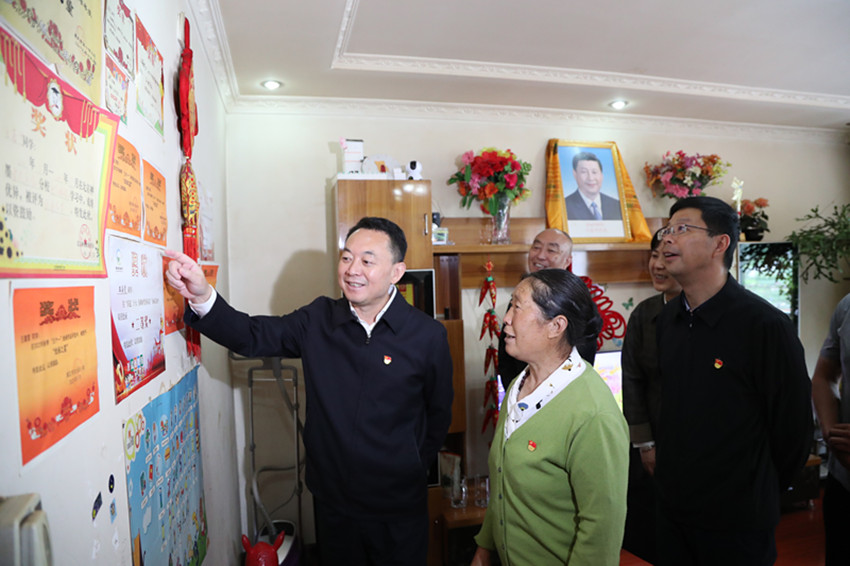 沈陽在黨員任龍芳家中了解后輩學習情況。