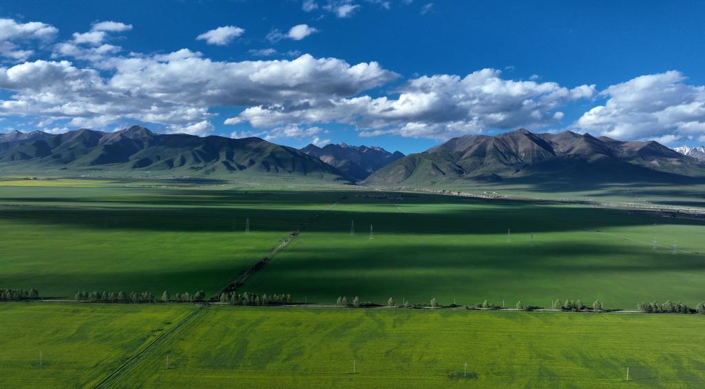 這是7月3日拍攝的門源縣境內風光(無人機照片)。新華社記者 韓方方 攝