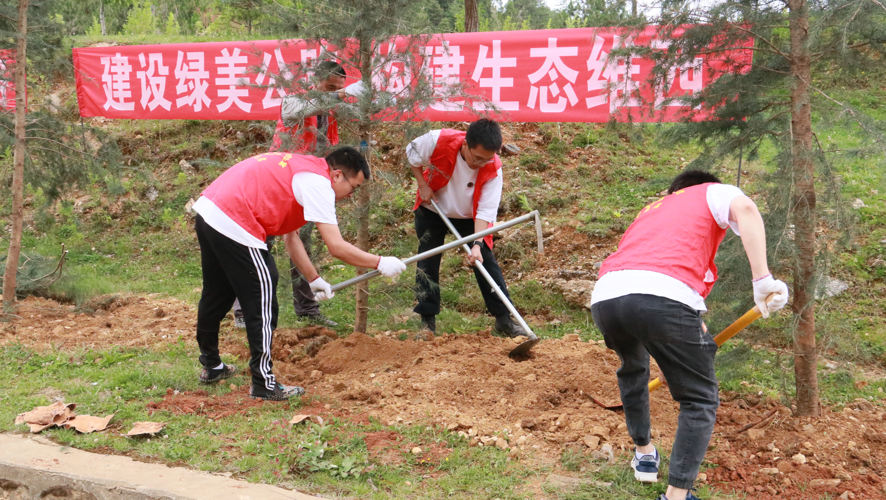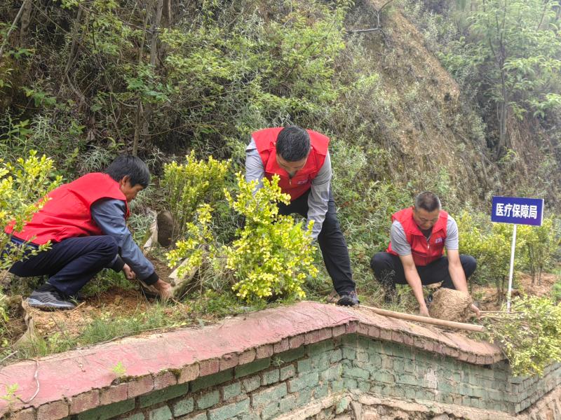 大家三五成群,有的用鋤頭鏟草,有的揮鍬挖坑,搬運樹苗、培土澆水……大家密切配合,各環節井然有序。