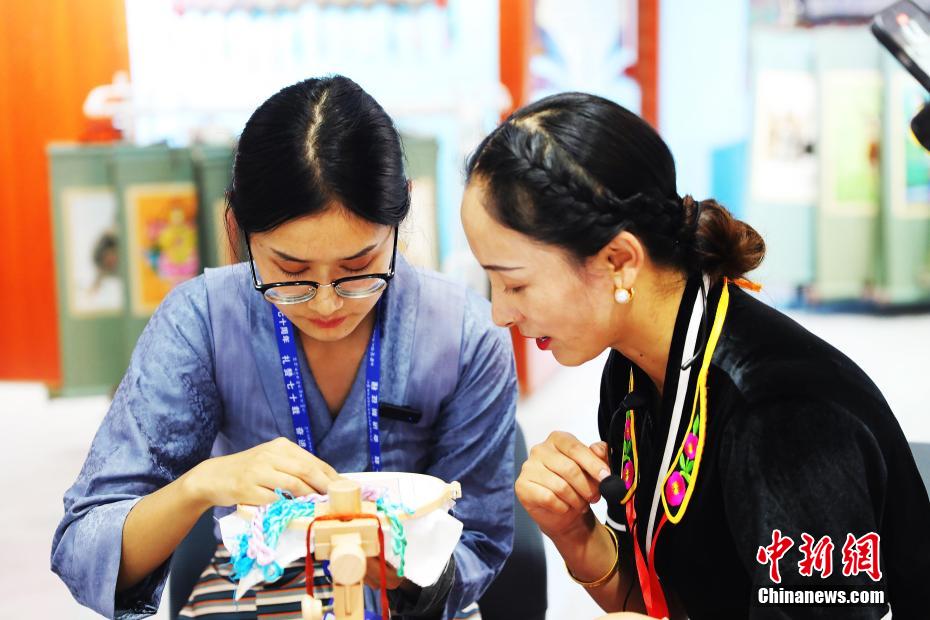 圖為游客體驗藏繡藝術(shù)。薛蒂 攝