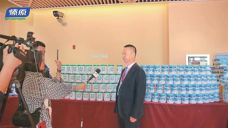 牦牛乳行業企業代表甘肅燎原乳業集團董事長馬鵬舉接受媒體采訪。
