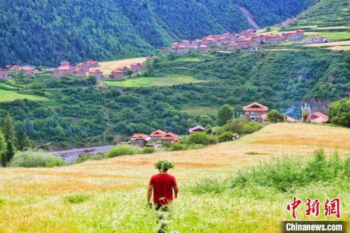 風吹麥浪溢清香,田間地頭收割忙。眼下,四川阿壩州金川縣俄熱鄉成片的高原黑青稞迎來收獲季。村間沿路的田地里,黑青稞在微風吹拂下如波濤翻滾,泛著金光。高處俯望,遠處群山連綿,近處麥浪起伏,沃野千里,勾勒出一幅“產業興、百姓富、生態美”的鄉村振興美麗畫卷。