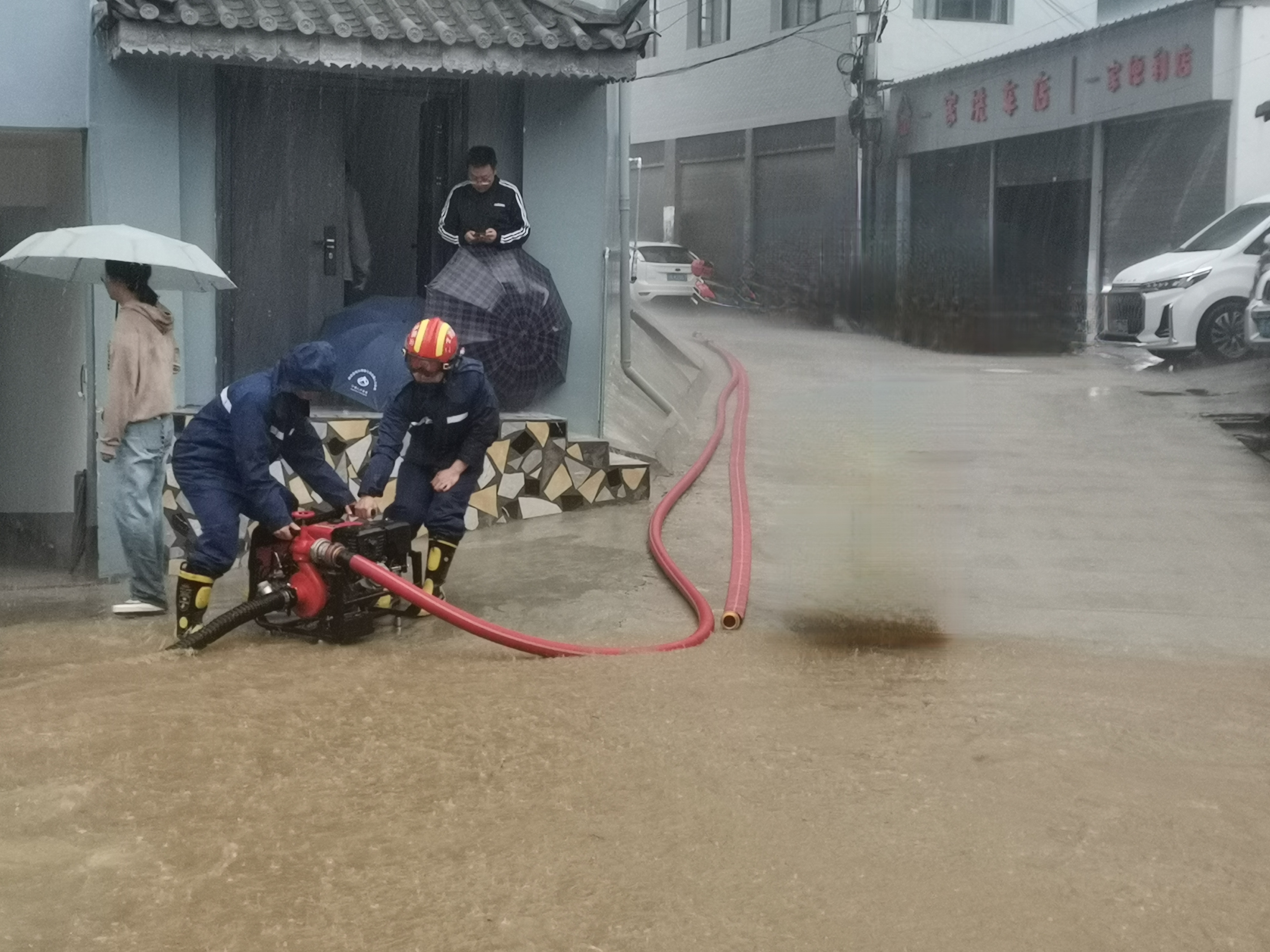 其間,消防救援人員通過利用大流量手抬機動泵不間斷抽排積水,經過1個多小時的奮戰,路面積水明顯下降,倉庫、商鋪積水清理完畢,貨物移交轉移。22時50分,道路恢復暢通,居民、商戶險情被排除。